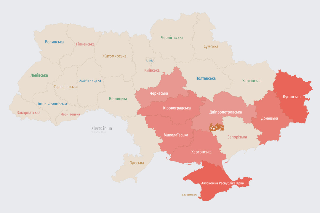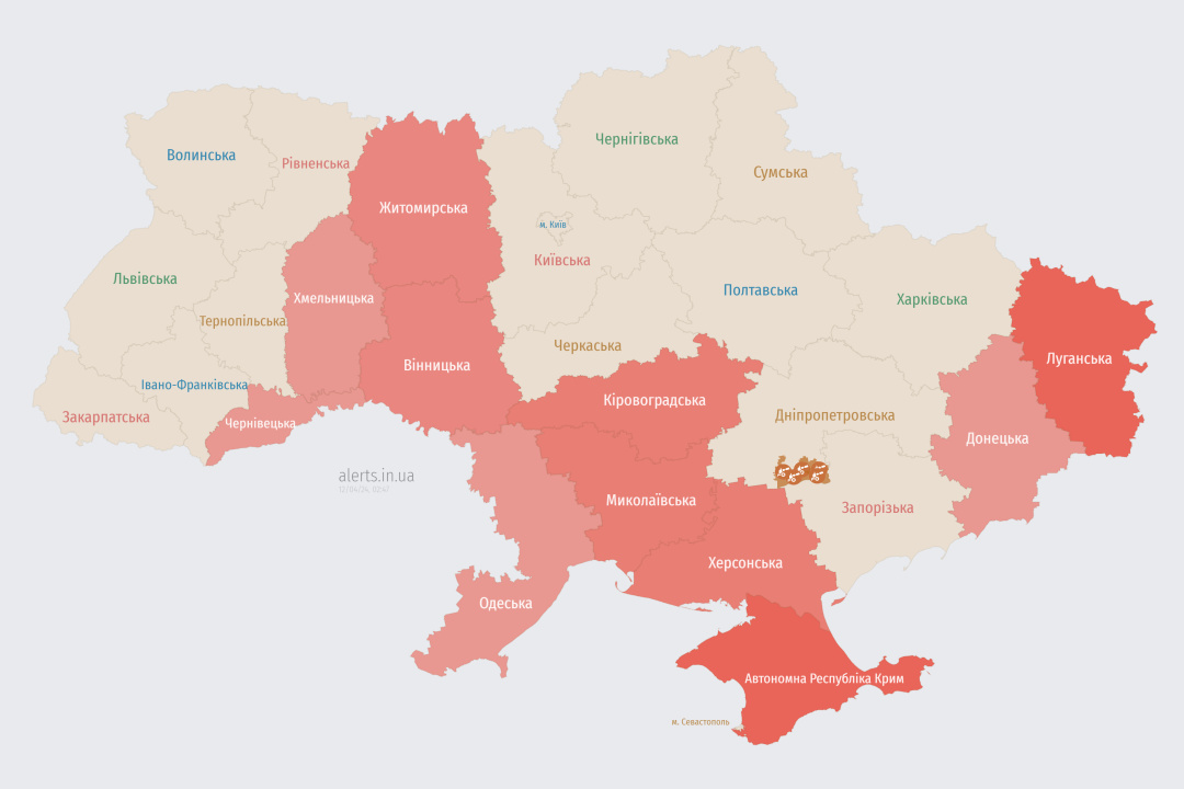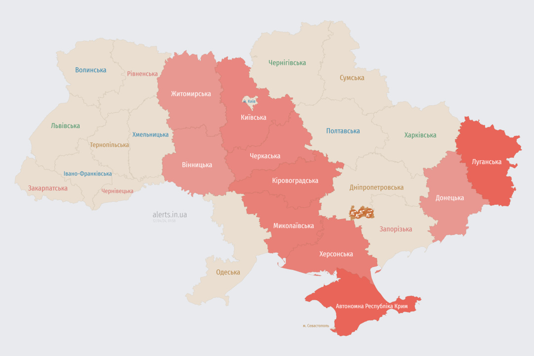 Війська РФ запустили по території України дрони-камікадзе типу "Шахед". Ввечері, 11 квітня, було оголошено повітряну тривогу у низці областей.
