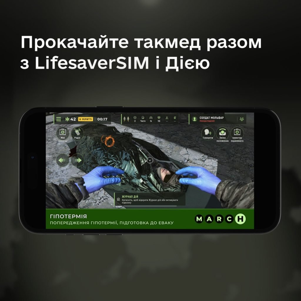 Дія дала безкоштовний доступ до ігрового симулятора для навчання такмеду. Відтепер кожен українець, який залогіниться в ігровий симулятор LifesaverSIM через Дію, зможе безкоштовно вивчати основи домедичної допомоги й тактичної медицини.