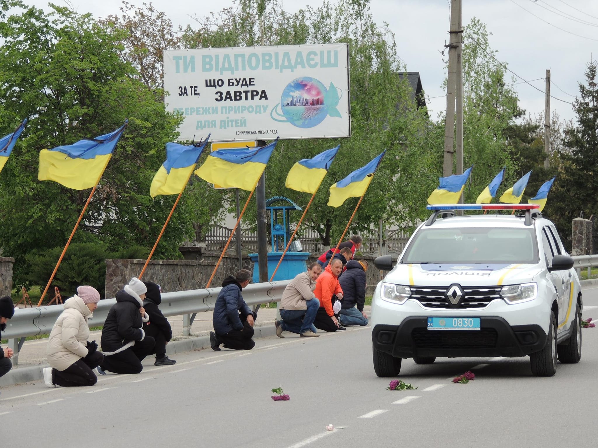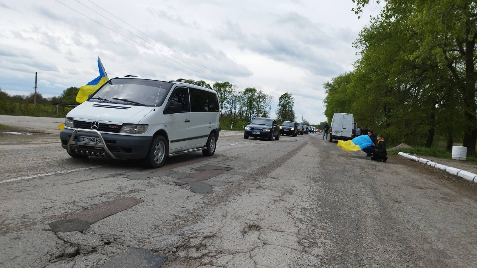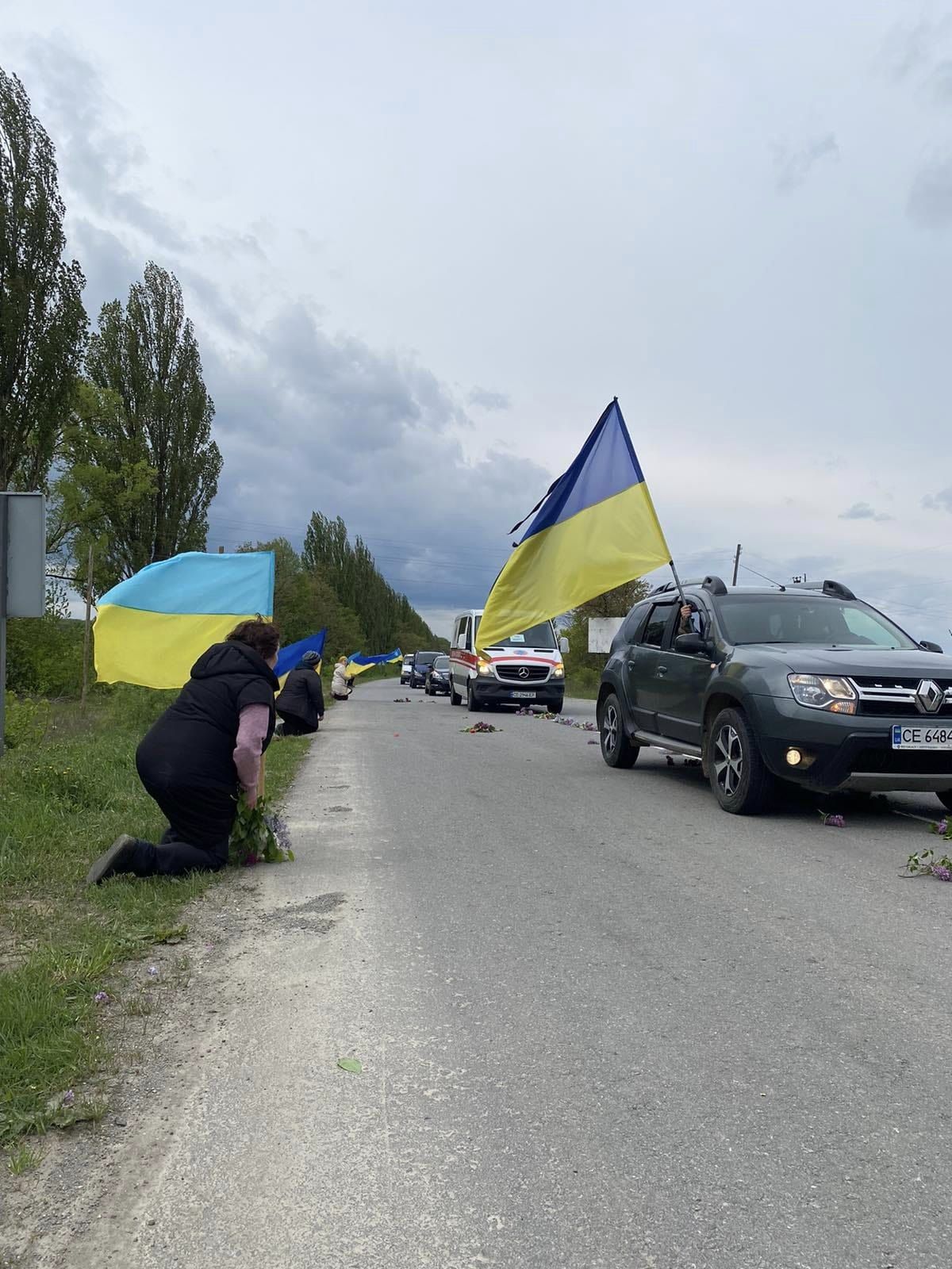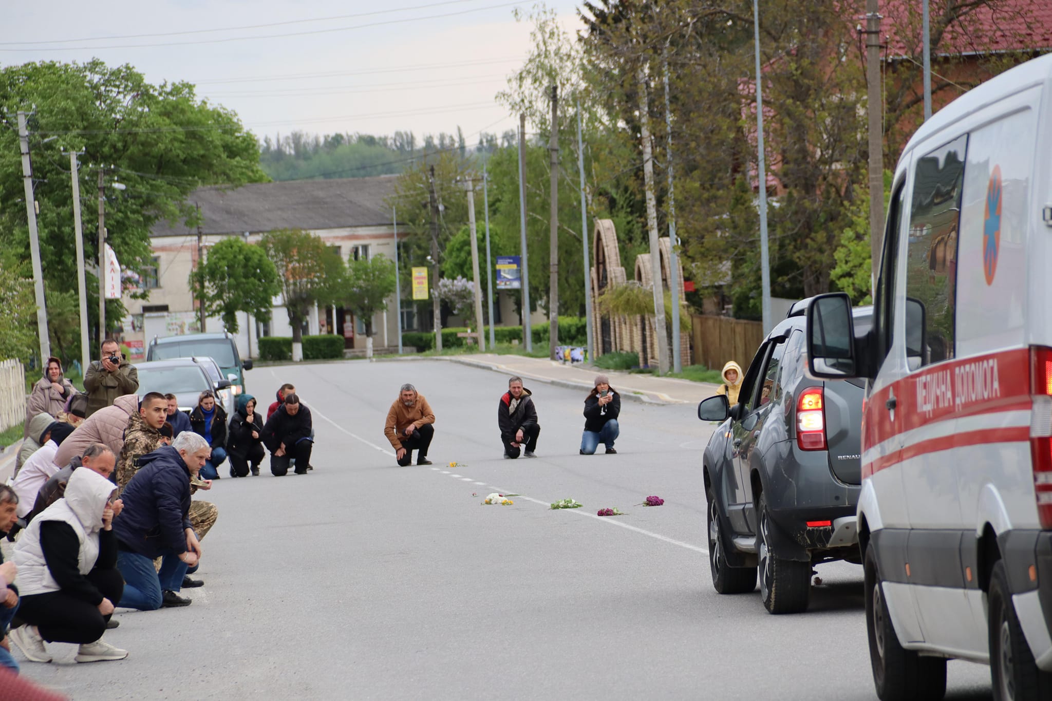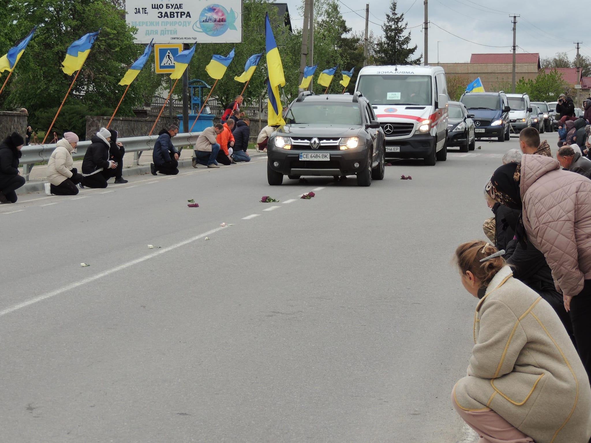 Траурний кортеж із тілом воїна зустрічали на сокирянській землі жителі громади, стоячи навколішки ….