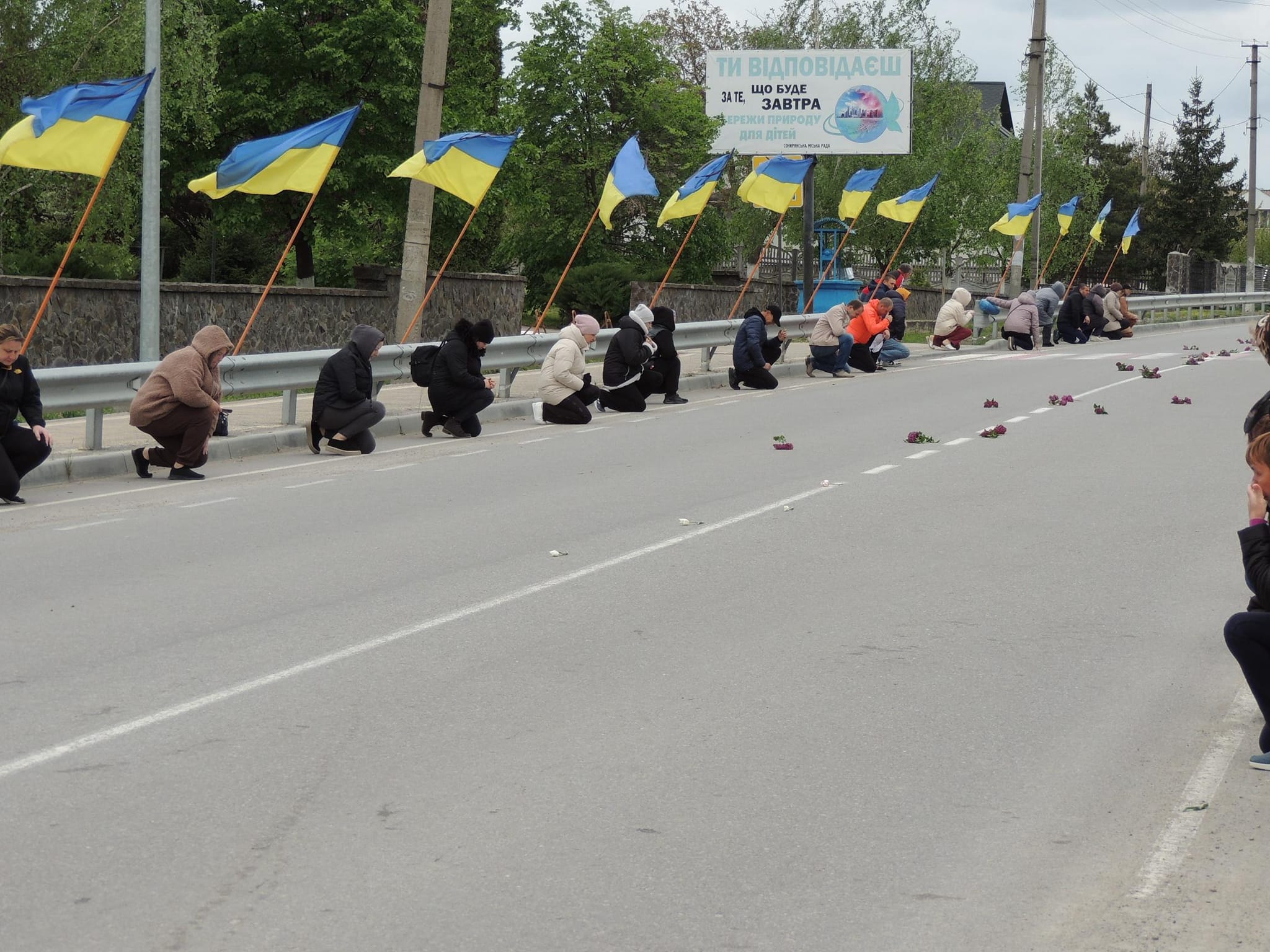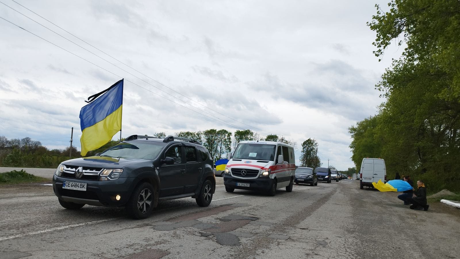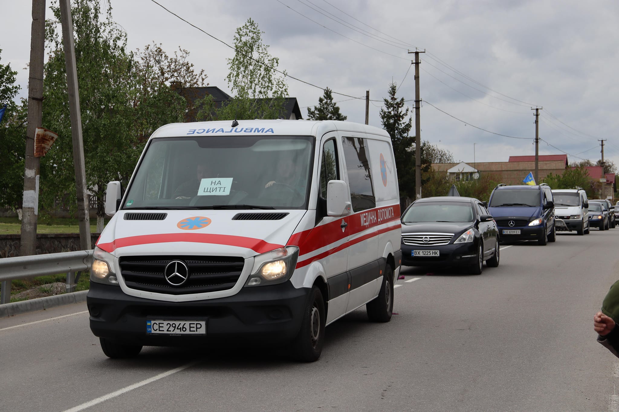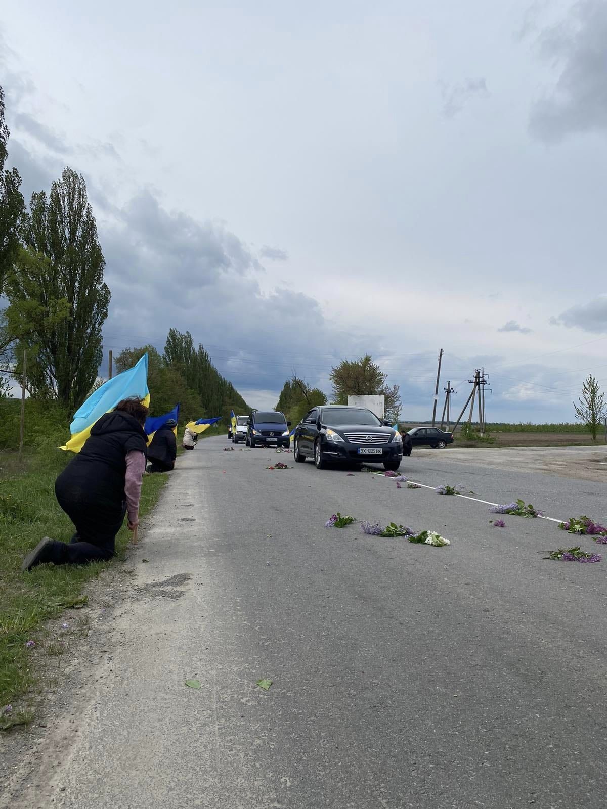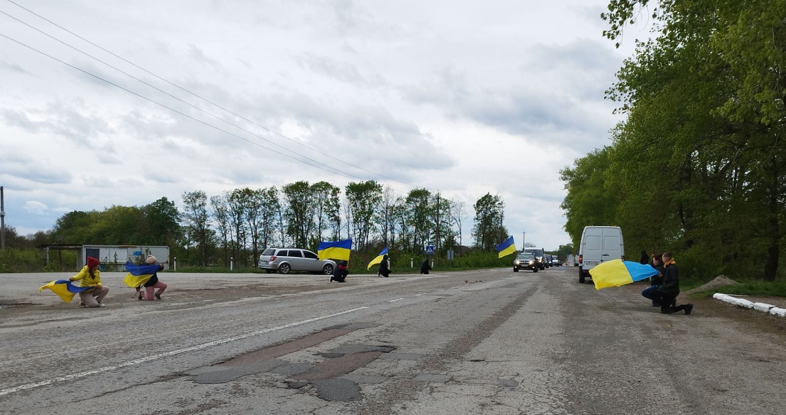 Траурний кортеж із тілом воїна зустрічали на сокирянській землі жителі громади, стоячи навколішки ….