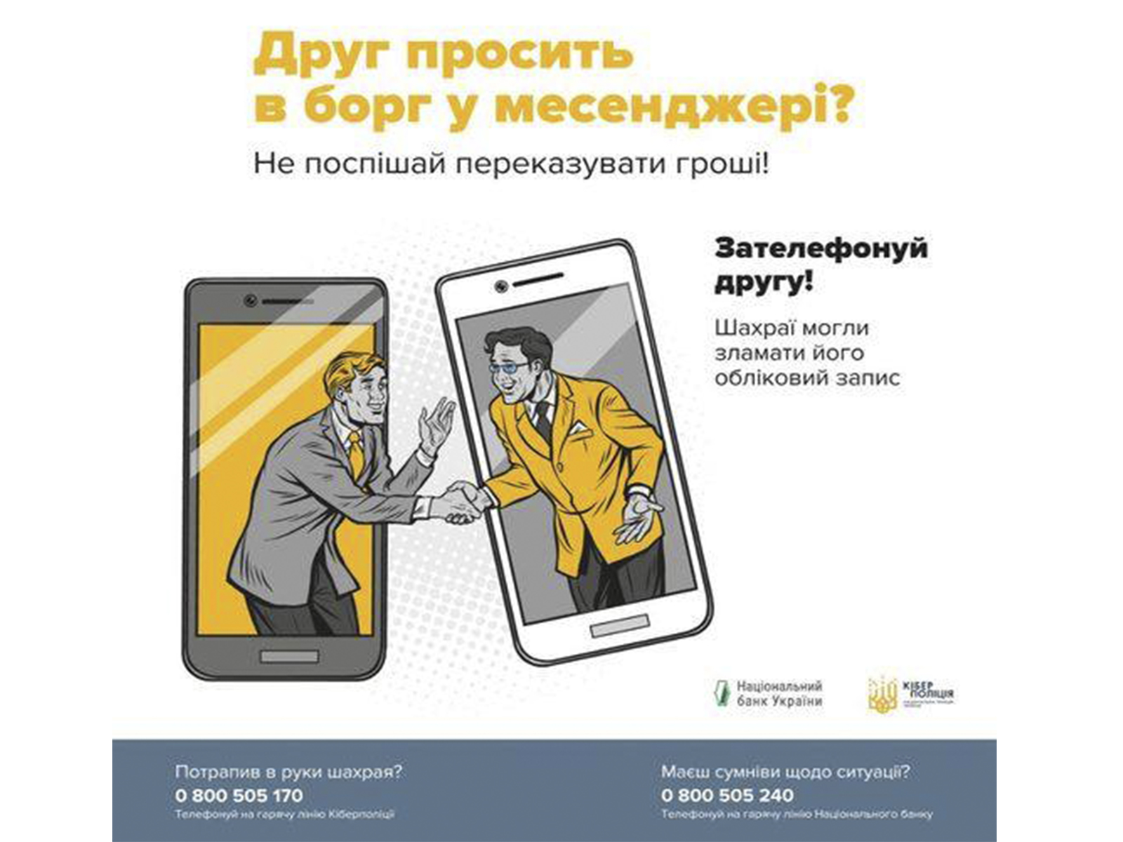 Співробітники поліції нагадують громадянам, якщо у месенджері чи соціальних мережах знайомий звертається з проханням позики коштів – не поспішайте перераховувати гроші, спершу зателефонуйте до нього та переконайтеся у достовірності інформації. Адже шахраї зламують облікові сторінки користувачів та пишуть від їхнього імені.