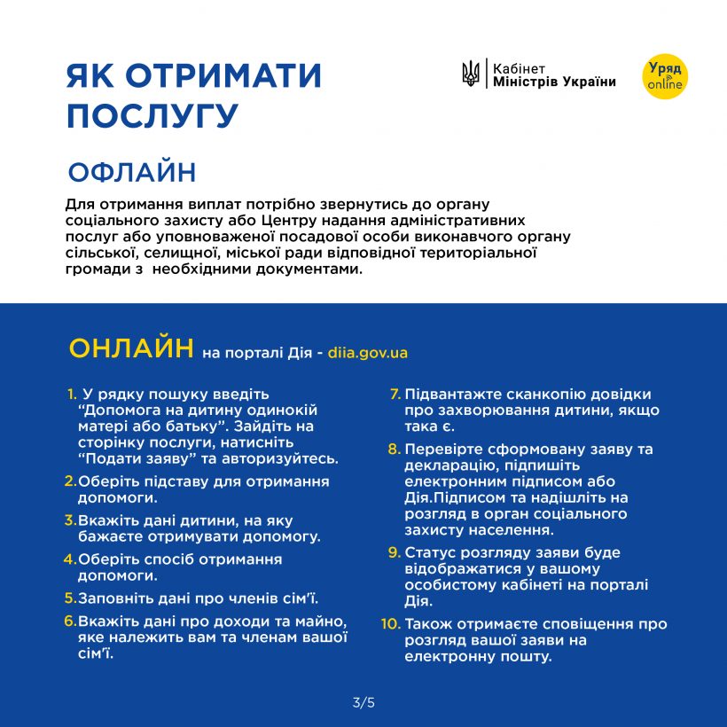 Як оформити грошову допомогу на дитину одинокій матері чи батьку? Це можна зробити офлайн, або заповнити форму на порталі Дія. Подання онлайн-заявки займе приблизно 30 хвилин.
