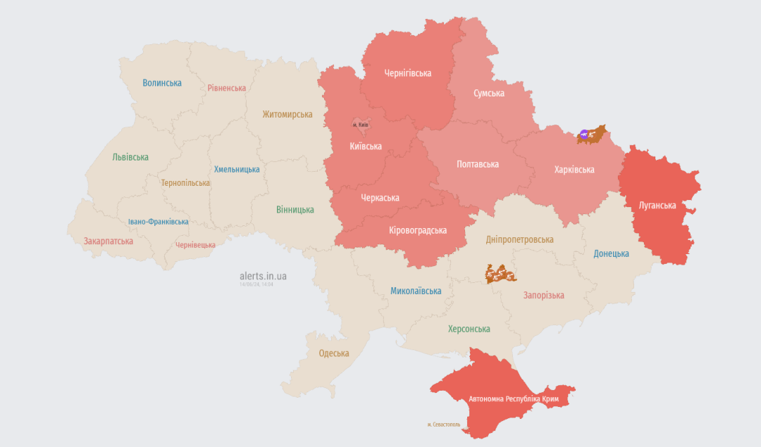 Раніше у Києві та тизці областей оголосили повітряну тривогу.
