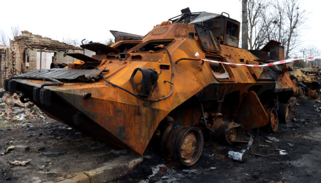 Також Сили оборони України знищили 8206 (+7) російських танків, бойових броньованих машин ‒ 15811 (+32), артилерійських систем – 15262 (+46), РСЗВ – 1119 (+0), засобів ППО ‒ 890 (+1), літаків – 361 (+0), гелікоптерів – 326 (+0), БПЛА оперативно-тактичного рівня – 12108 (+39), крилатих ракет ‒ 2397 (+0), кораблів / катерів ‒ 28 (+0), підводних човнів ‒ 1 (+0), автомобільної техніки та автоцистерн – 20538 (+77), спеціальної техніки ‒ 2566 (+10).