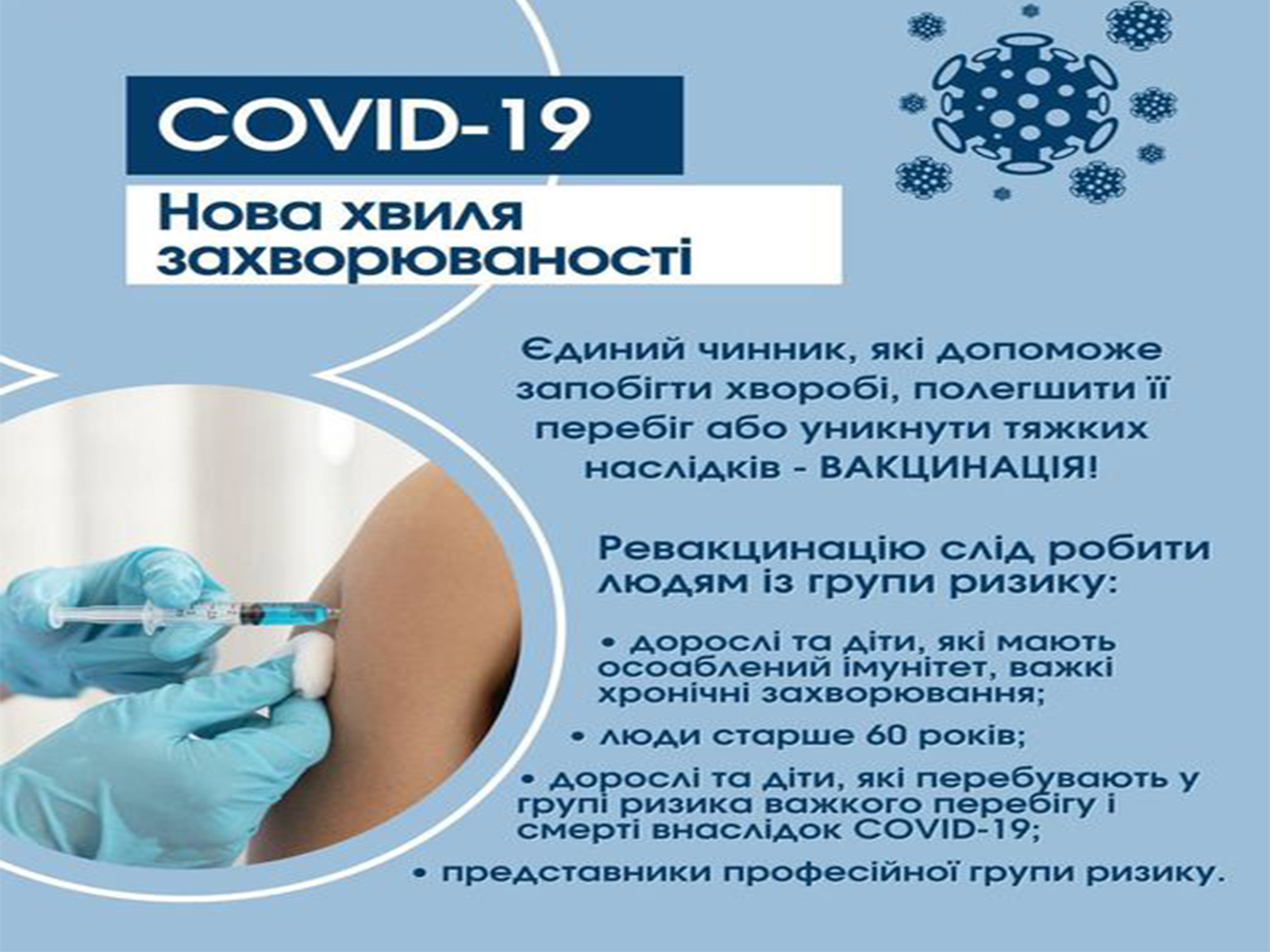 Люди, які входять до групи ризику тяжкого перебігу COVID-19 – для них передбачено введення більшої кількості доз (тобто ревакцинація через 6-12 міс.).