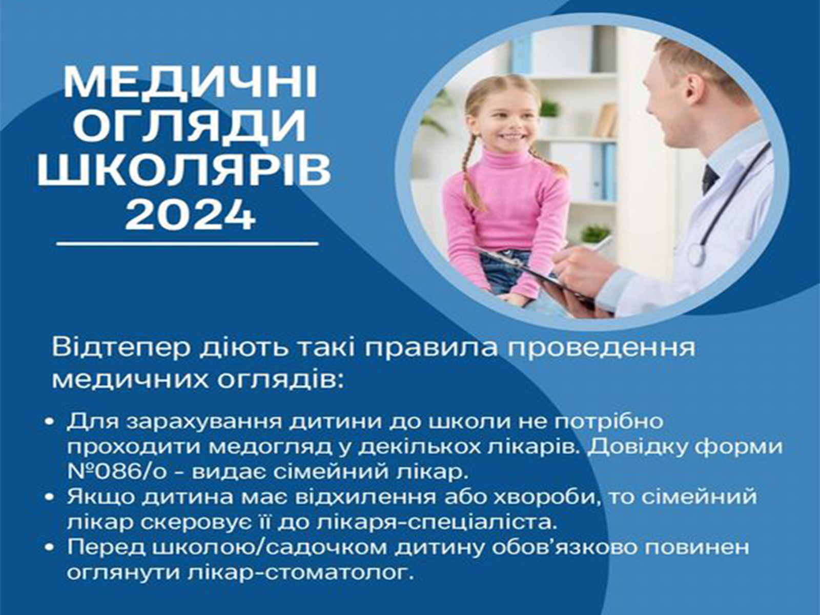 Медичні огляди для зарахування дитини до школи/садочка – обов’язкові!