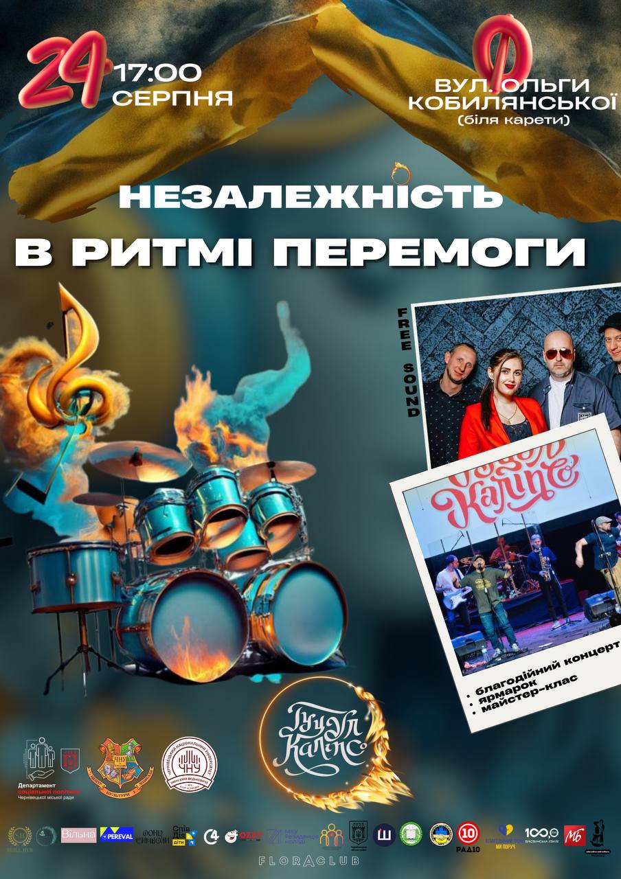 Для відвідувачів виступатимуть Тетяна Петришина, Ivan Lucky, Юрій Олесь, учасники ЦКІД ЧНУ, гурт «Free Sound». А спеціальним гостем буде український гурт «Гуцул Каліпсо». Окрім концерту, презентують ярмарок-виставку картин від Артистки «Помста», майстерклас з виготовлення патріотичних браслетів від простору «Вільна», ярмарок прикрас з бісеру від майстерні Sparrow.beads, майстерклас з виготовлення свічок з вощини від Резиденції молоді.