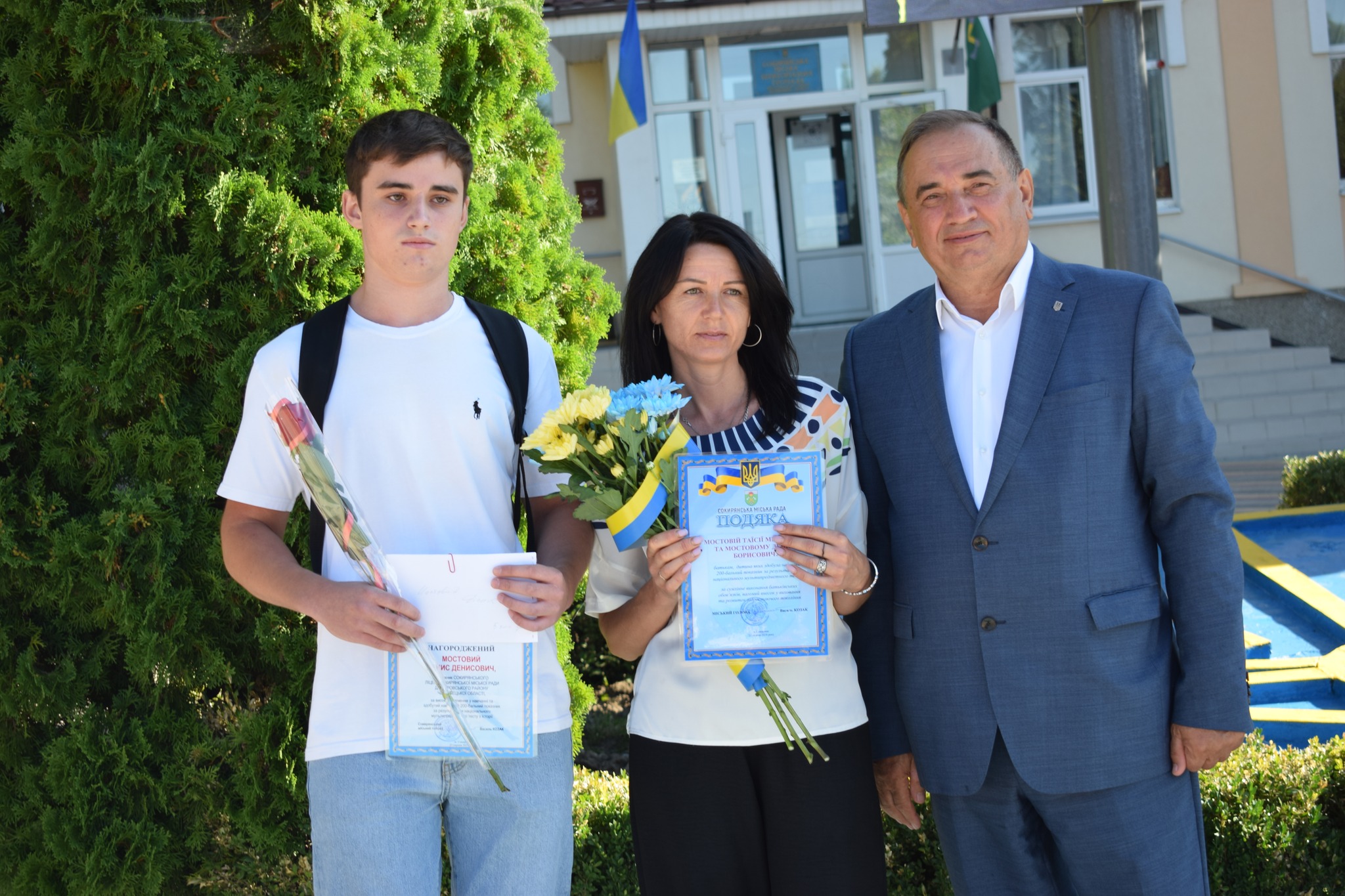 В ході урочистостей, присвячених Дню Державного Прапора України, відзначені двоє випускників опорного закладу «Сокирянський ліцей №1» – Олександр Настасій та Анастасія Борзова та випускник Сокирянського ліцею – Денис Мостовий.