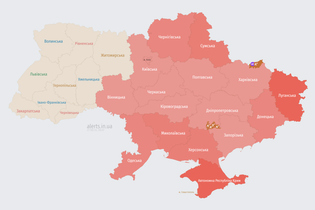 У столиці, східних, південних та більшості центральних областей було оголошено повітряну тривогу.
