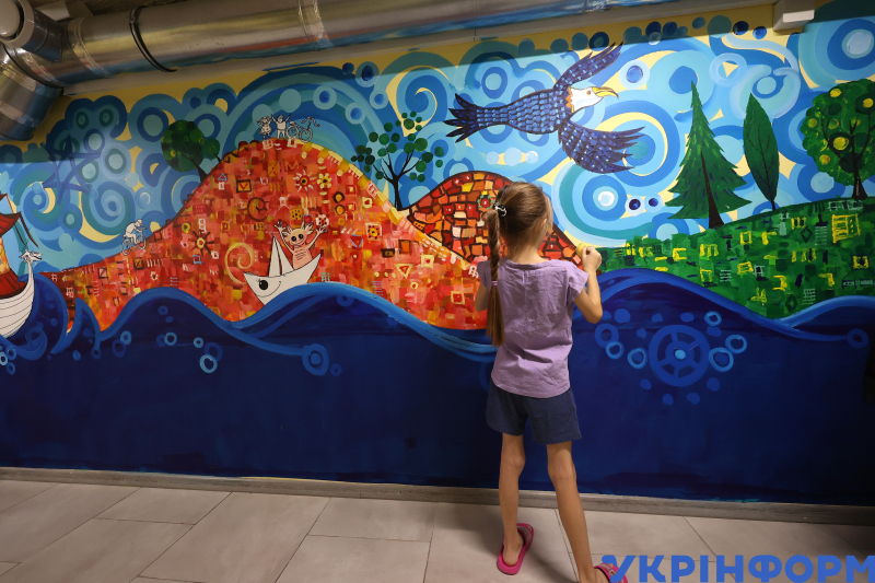 10.09/ Художниця Зоя Север та пацієнти Харківської дитячої лікарні створили панно у бомбосховищі
