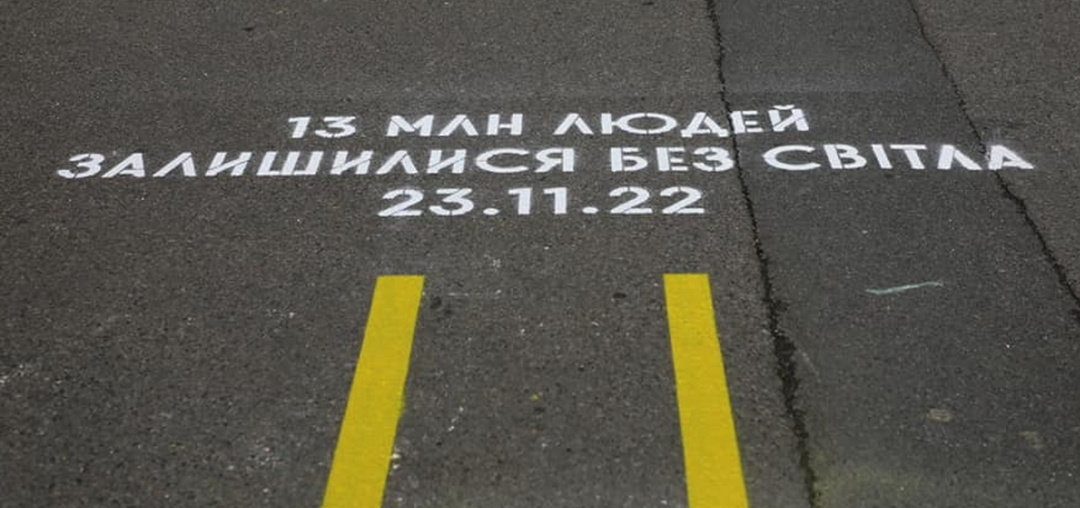 Масштаби руйнувань росіянами української енергосистеми неможливо оцінити одним трансформатором. Поруч із вигорілим і мертвим гігантом на асфальті зображено велику електросхему, поміж ланками якої є інформація, яка вражає не менше. 13 мільйонів людей залишилися без світла у листопаді 2022 року. За 939 днів повтомасштабного вторгнення енергетичні об’єкти України було обстріляно понад тисячу разів.