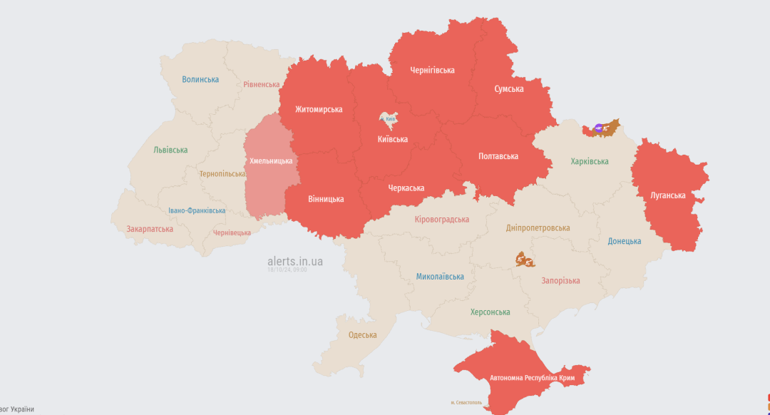 01:52 – у більшості областей – повітряна тривога, ПС ЗСУ інформують про рух "Шахедів": "БпЛА в східній частині Рівненщини, курс західний. БпЛА в південній частині Житомирщини, курс західний. БпЛА в північній частині Київщини, курс західний. БпЛА в південній частині Київщини, курс південно-західний. БпЛА в південній частині Чернігівщини, курс південно-західний. БпЛА в північній та південній частинах Сумщини, курс південно-західний. БпЛА в центральній частині Черкащини, курс південно-західний. БпЛА в західній та північній частині Полтавщини, курс південний. БпЛА в центральній частині Кіровоградщини, курс західний. БпЛА в західній частині Дніпропетровщини, курс північний. БпЛА в північній та східній частинах Миколаївщини, курс північно-західний. БпЛА західніше Одеси, курс північний".