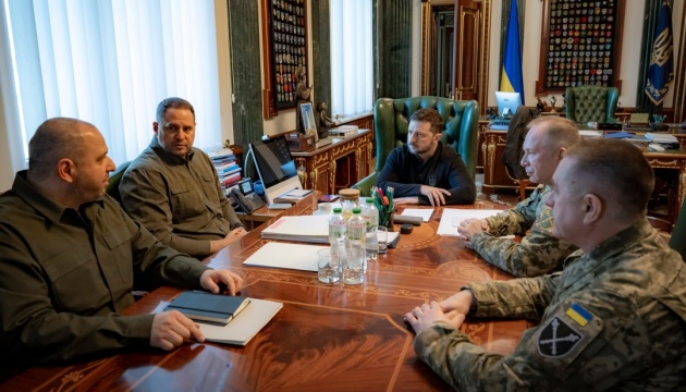 Президент Володимир Зеленський провів нараду з міністром оборони Рустемом Умєровим, головкомандуючим Олександром Сирським та начальником Генштабу Анатолієм Баргилевичем і заслухав доповідь щодо ситуації на всіх напрямках ведення бойових дій.