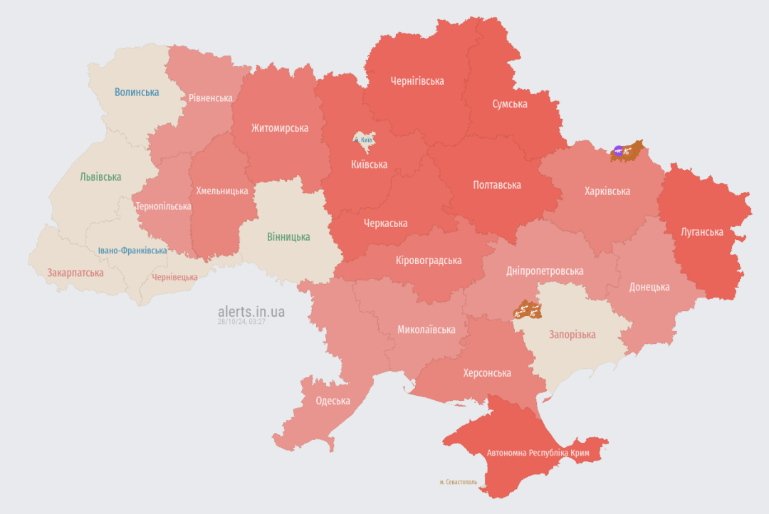 Актуальна карта повітряних тривог станом на 03:27