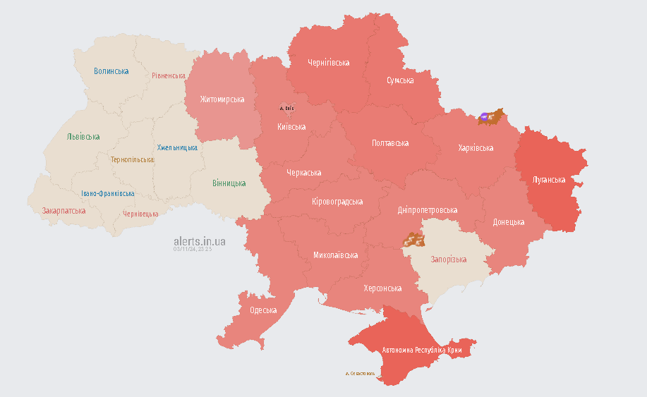 Про це повідомляє Укрінформ із посиланням на мапу повітряних тривог та Київську МВА.