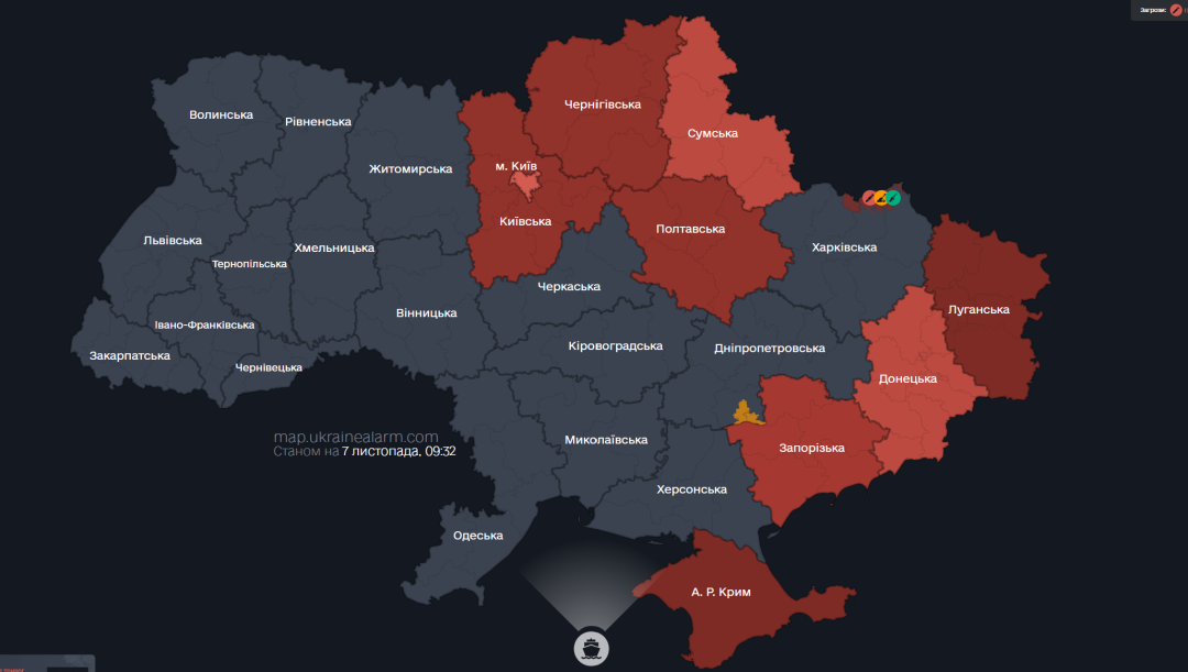 Як передає Укрінформ, про це Повітряні сили Збройних сил України повідомили у Телеграмі та свідчать дані мапи повітряних тривог.