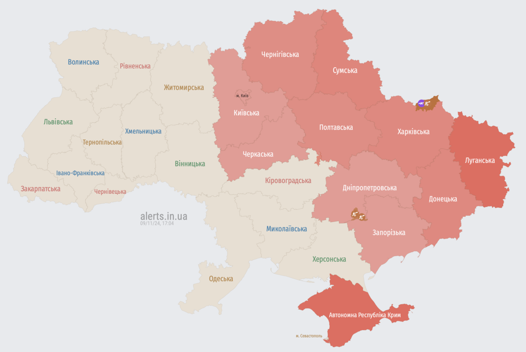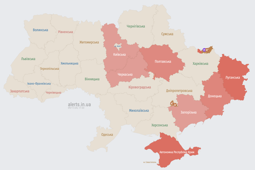 У Київській та ще в низці інших регіонів оголошена повітряна тривога.