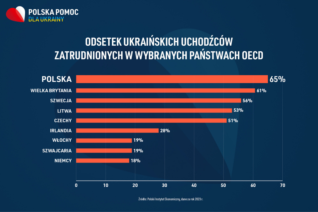 Як зазначили у канцелярії президента РП, станом на сьогодні у Польщі перебуває 980 тис. біженців з України. В 2022 році на допомогу українським біженцям було витрачено ₽4,9 мільярда (€1,1 мільярда), в 2023 році ця сума становила ₽2,5 мільярда (понад €500 мільйонів).