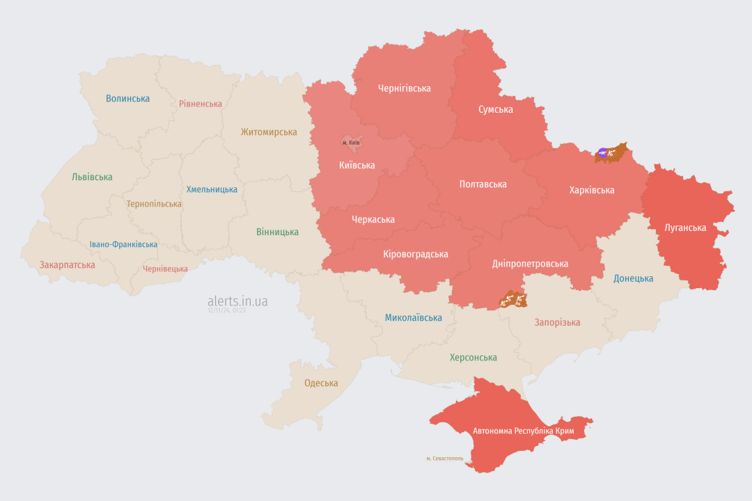 Про це повідомляє Укрінформ із посиланням на мапу повітряних тривог та Повітряні сили ЗСУ.