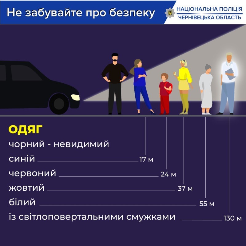 Будь помітний на дорозі – поліцейські Чернівецької області закликають пішоходів використовувати світлоповертальні флікери на одязі