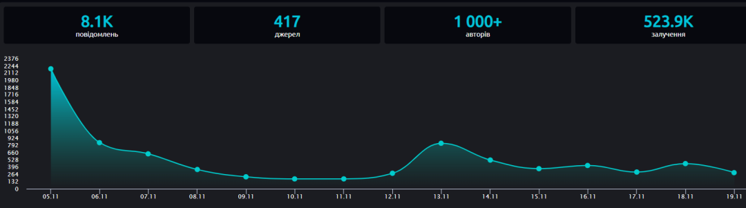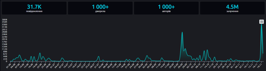 Протягом 1 червня ‒ 19 листопада лише у російськомовному сегменті соцмереж та інтернет-сайтів з’явилося понад 90 тисяч, а в англомовному ‒ понад 31,5 тисячі публікацій  зі згадкою про зміну ядерної доктрини РФ.