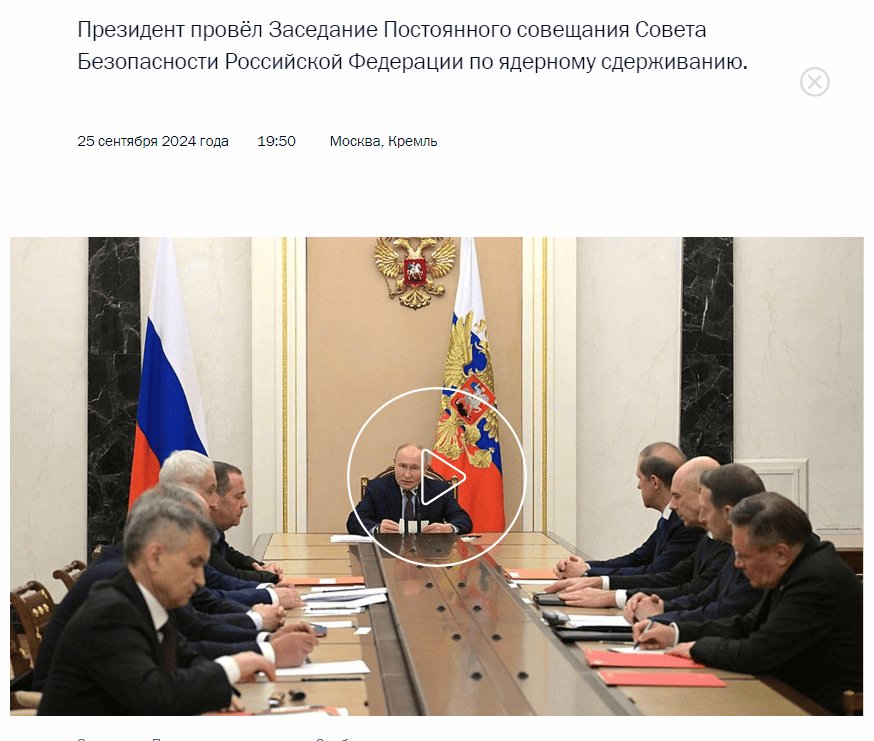 На засіданні Ради безпеки РФ 25 вересня кремлівський диктатор оголосив пропозиції щодо внесення змін до свого ж указу від 2020 року «Про основи державної політики РФ у галузі ядерного стримування».