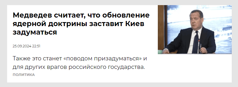Приклад маніпуляції з «прив’язування» зміни ядерної доктрини до удару по арсеналу в Брянській області