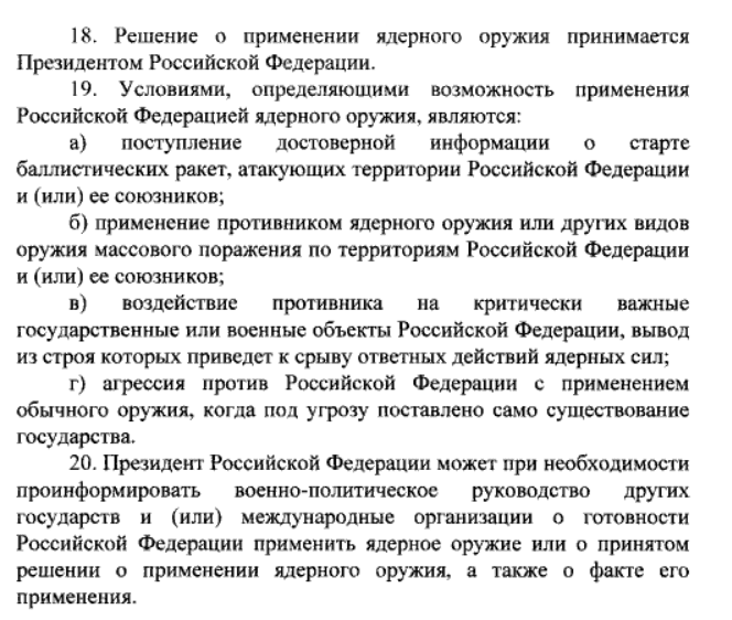 Якщо ж порівняти нововведення з попередньою редакцією «Основ ядерного стримування», затверджених у 2020 році, виявиться,  що запропоновані зміни зводяться лише до: