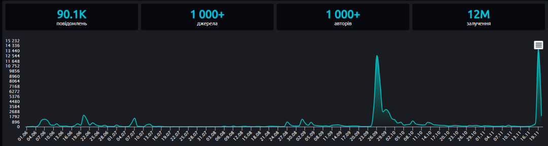 Піки пов’язані із заявами офіційних осіб, засіданням Радбезу РФ 25 вересня та підписанням Путіним указу 19 листопада.