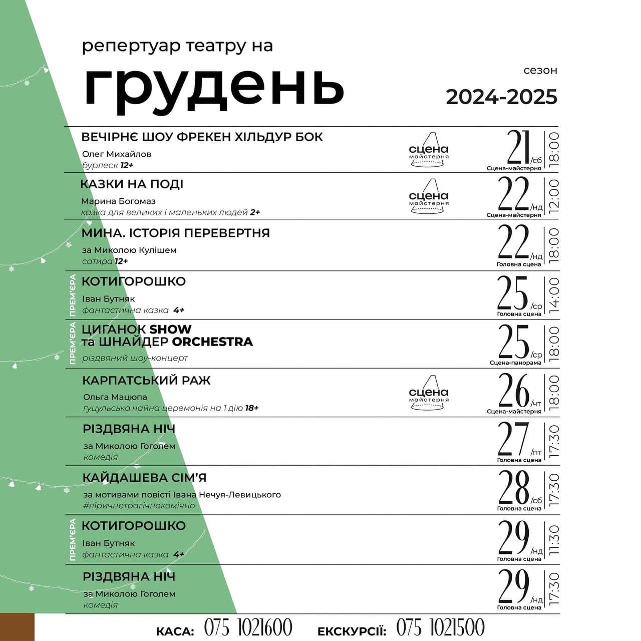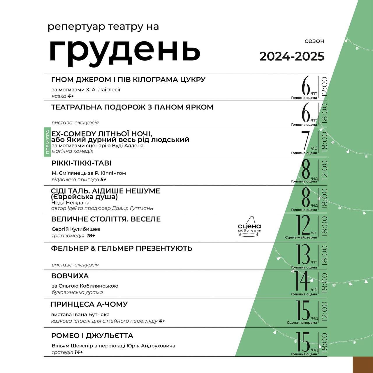 У Чернівецькому драмтеатрі оприлюднили афішу на грудень
