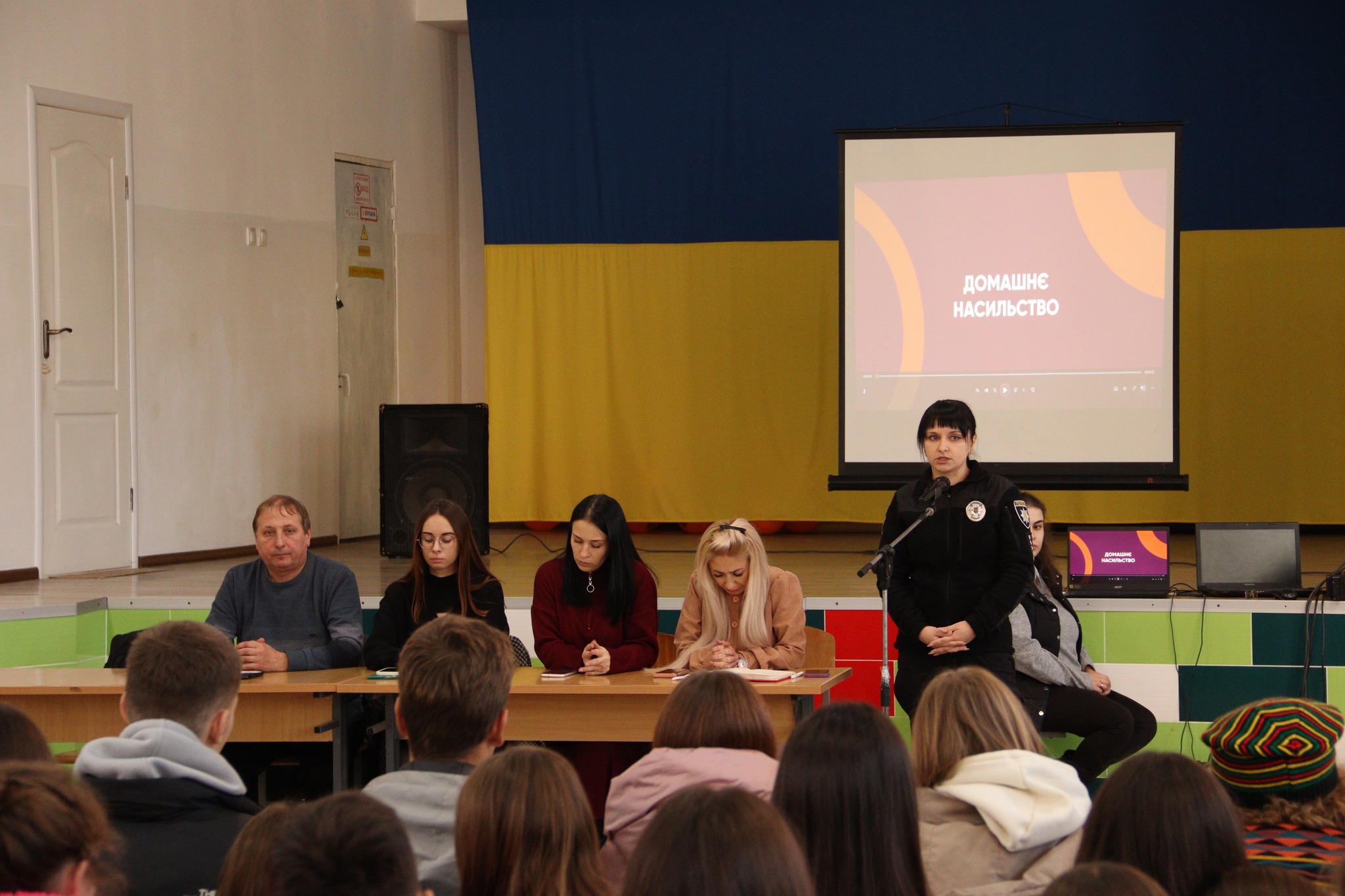 Заклад освіти відвідали старший інспектор сектору ювенальної превенції відділу взаємодії з громадами Дністровського РВП НУНП в Чернівецькій області капітан поліції Ірина Мігалескул, керівник спеціалізованої служби соціально-психологічного консультування осіб, що постраждали від насильства в сім’ї та/або насильства за ознакою статі КУ “Центр надання соціальних послуг” Сокирянської міської ради Аліна Молодовська та головний спеціаліст служби у справах дітей міської ради Олександр Гладкий.