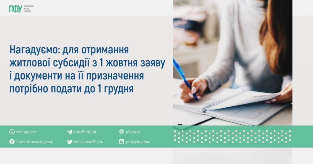 Нагадуємо: для отримання житлової субсидії з 1 жовтня заяву і документи на її призначення потрібно подати до 1 грудня