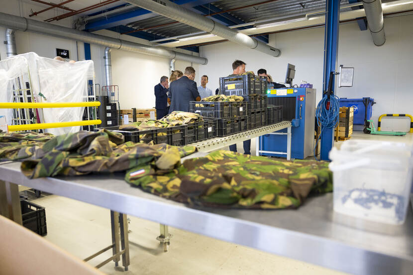 Компанія з виробництва форми (KPU-bedrijf) вже перевезла перші 76 ящиків до Алмело. Після вказівок співробітників компанії ув’язнені з виправної установи долучилися до роботи в спеціальних кімнатах з десятками тисяч одиниць форми. Вони перевірять, оглянуть, відсортують, виперуть і підготують форму до використання в Україні.