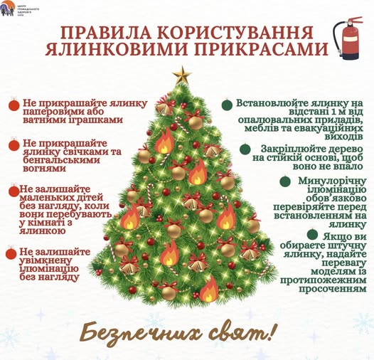 Дотримуйтесь правил безпеки під час Різдвяно-Новорічних свят та бережіть один одного.