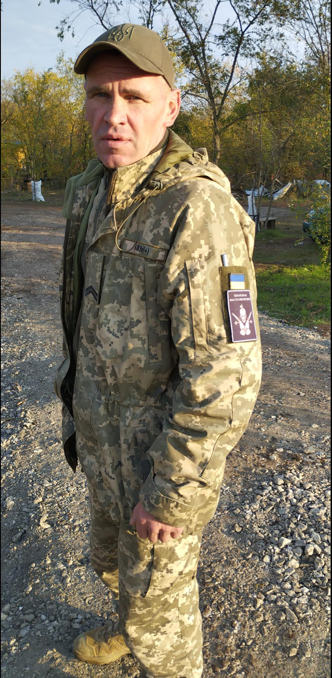 Коли почалося повномасштабне вторгнення, він був у Снігурівці. У перші ж дні разом із товаришами чоловік став до лав місцевої тероборони. Хлопці виготовляли пляшки із запальною сумішшю, будували барикади, щоб зупинити ворога, який невпинно наближався.