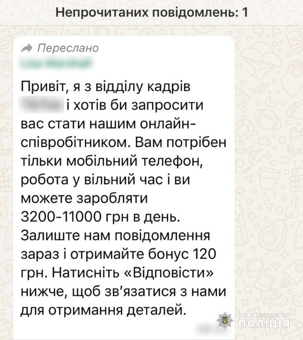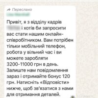1. Початковий етап. Жертві пропонують перейти за надісланими посиланнями і ставити вподобайки чи залишати відгуки. За це обіцяють виплати від 100 до 500 гривень. Шахраї входять у довіру та отримують персональні дані «клієнта», зокрема, інформацію про банківські картки.