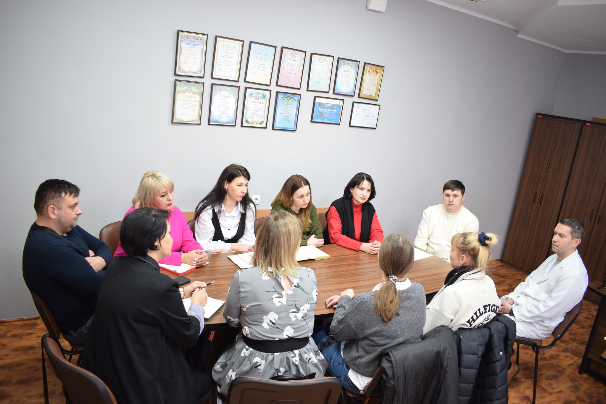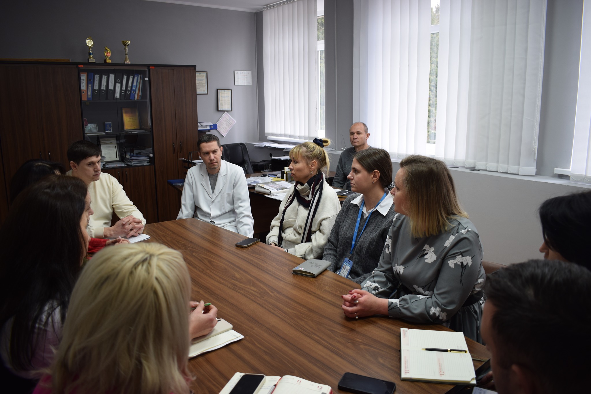 Зустріч відбулася на базі КНП “Сокирянська лікарня”. Участь у ній взяли представниці ПРООН Аліна Лебедєва та Анастасія Криволапова, а також команда фахівців, які працюють над реалізацією проєкту в громаді у складі представників профільних структур Сокирянської міської ради та КНП «Сокирянська лікарня».