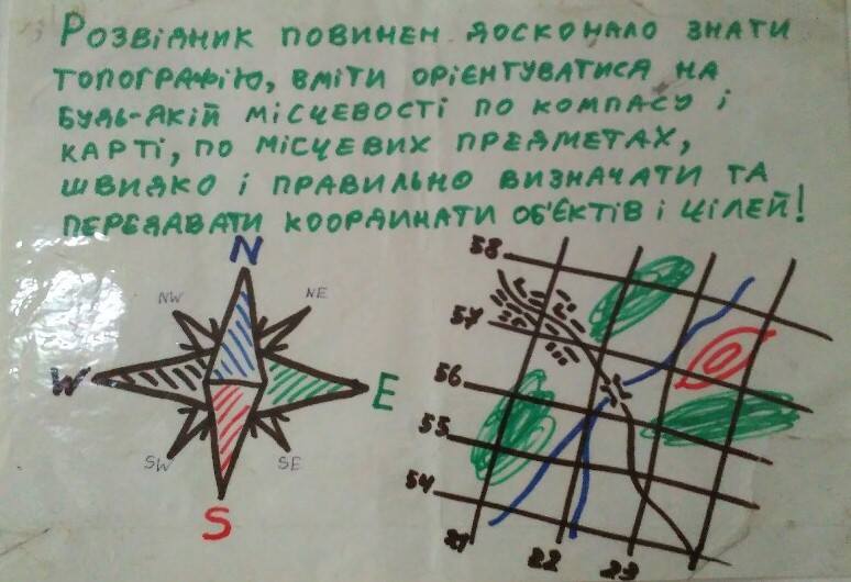 На малюнках – важливі моменти щодо ведення бою, навиків бійця та розвідника, якими мав натхнення поділитися «Скаут». «Розвідник повинен володіти навичками забезпечення життєдіяльності і виживання в екстремальних умовах». «Розвідник повинен досконало знати топографію, вміти орієнтуватися на будь-якій місцевості по компасу і карті, по місцевих предметах, швидко і правильно визначати та передавати координати обєктів і цілей!» «Не бачу – не стріляю» – означає, що не потрібно розстрілювати з переляку весь БК в білий світ! Веди чіткий прицільний вогонь короткими чергами і одиночними пострілами по вивлених цілях!»