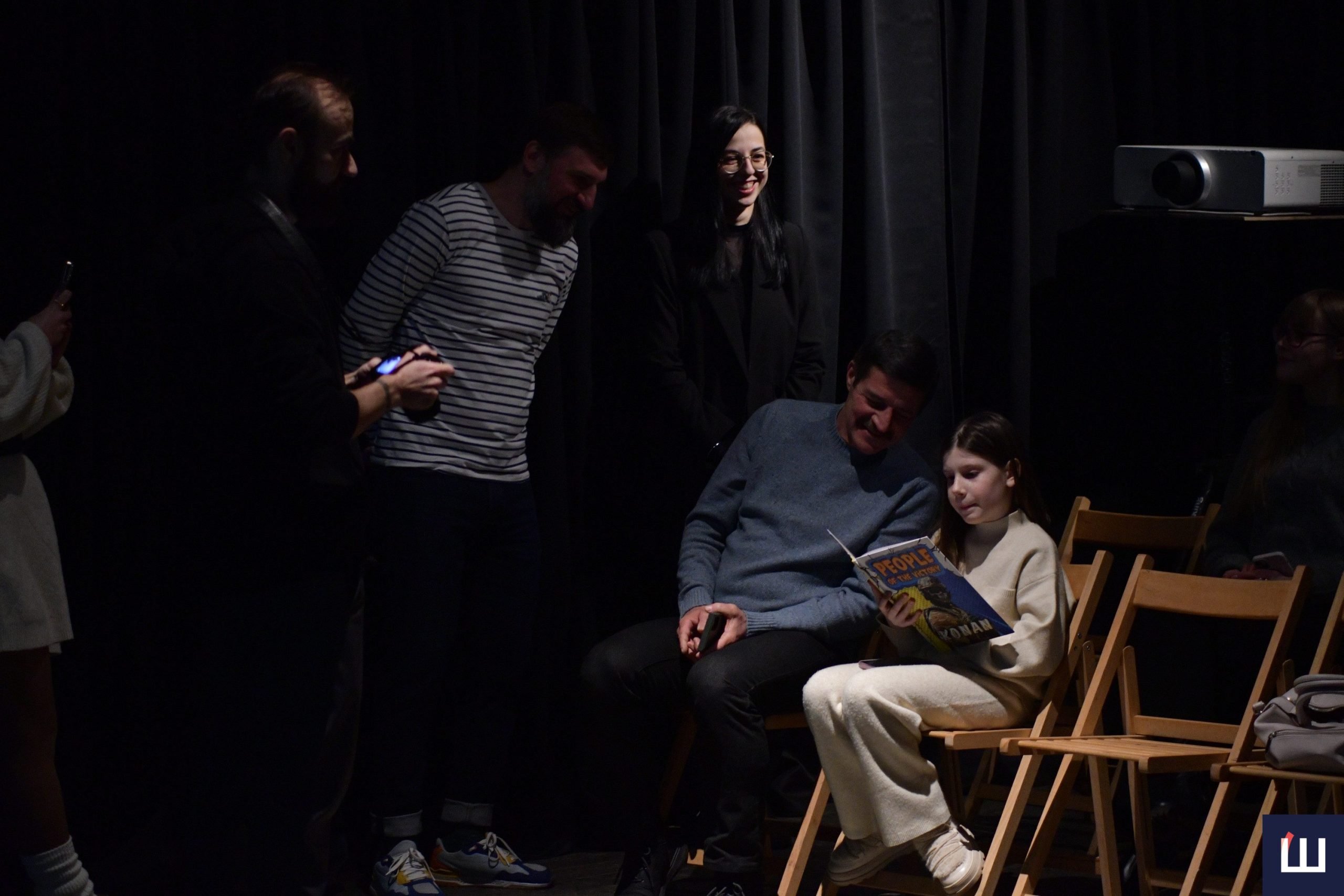 Саму ж презентацію провели теж у форматі уроку, де вчителем став актор драмтеатру Олексій Надкерничний. Він донедавна також був військовим.