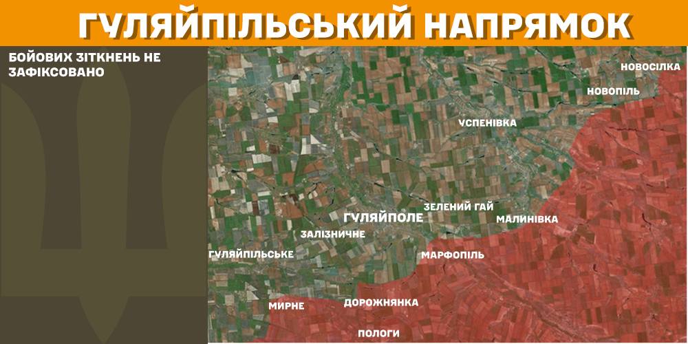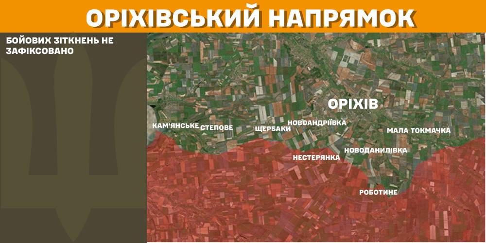На Оріхівському, Гуляйпільському і Придніпровському напрямках минулої доби бойових зіткнень не зафіксовано.
