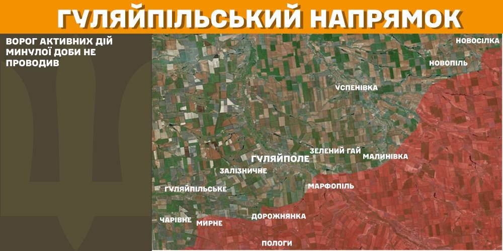 На Придніпровському та Гуляйпільському напрямках ворог активних дій минулої доби не проводив.
