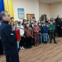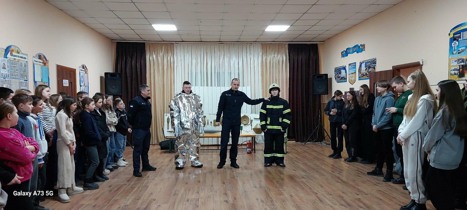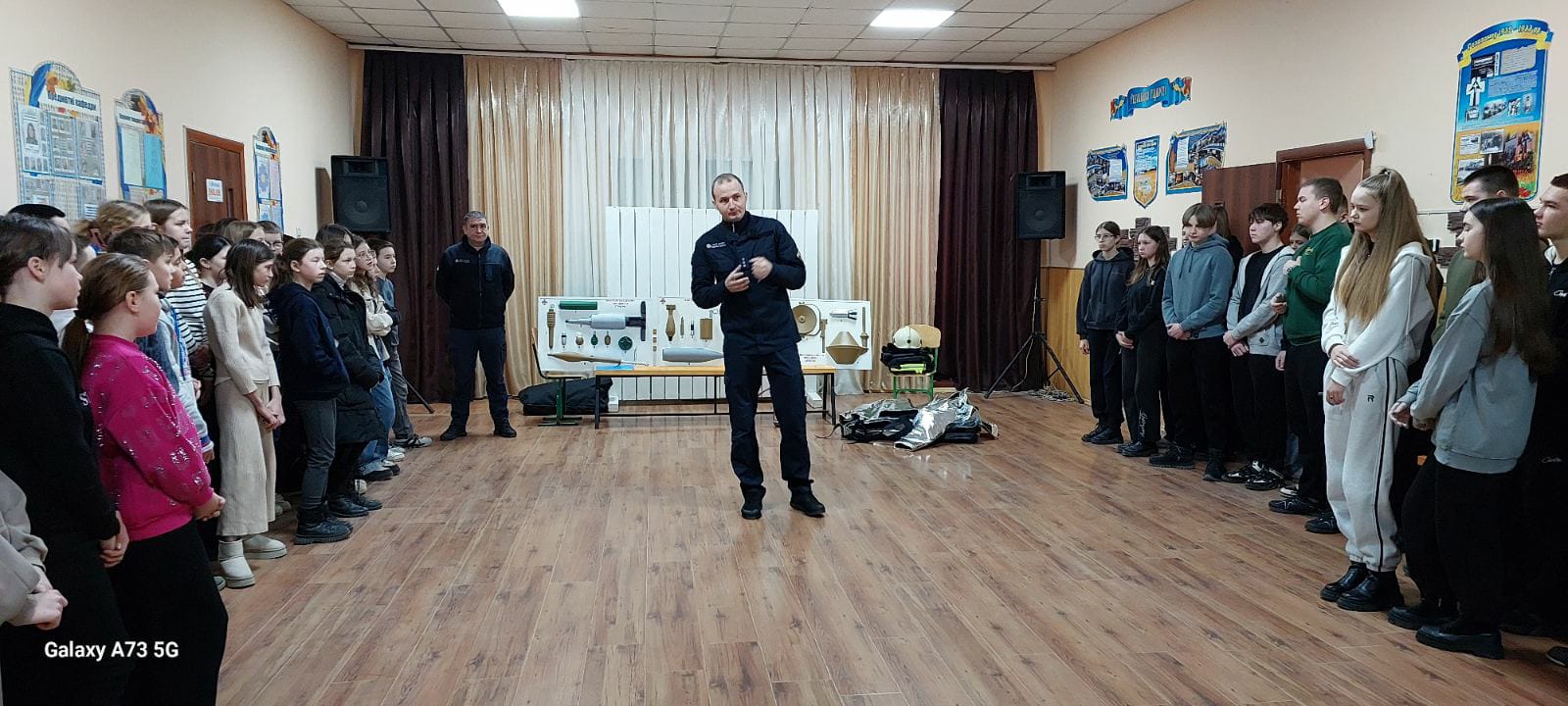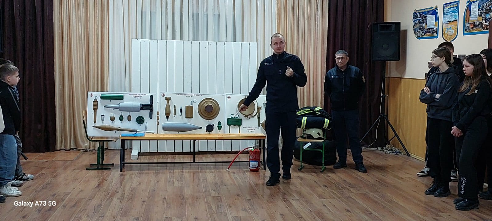 Під час заняття учням розповідали про дії під час виникнення надзвичайних ситуацій, правила мінної безпеки, зокрема алгоритм дій під час виявлення підозрілого предмету, нагадали порядок дій при сигналі “Повітряна тривога” та основні заходи безпеки при слідуванні до укриття.