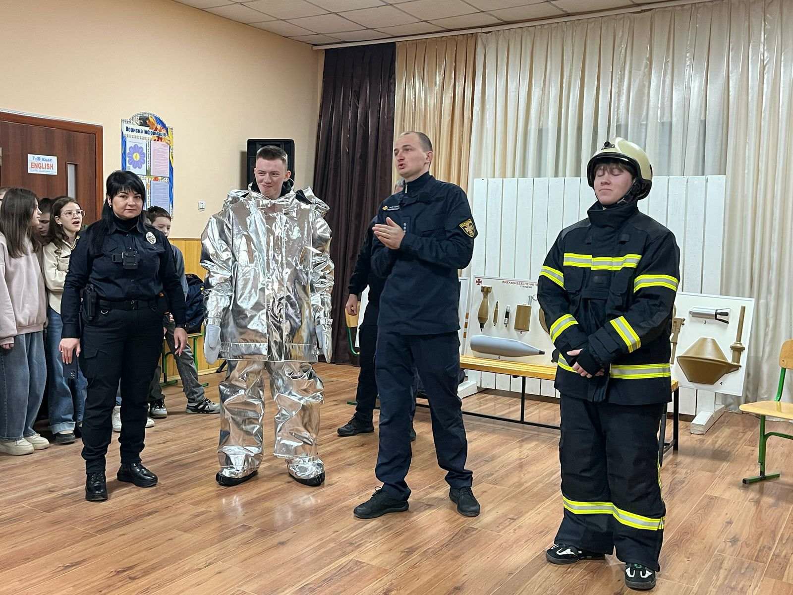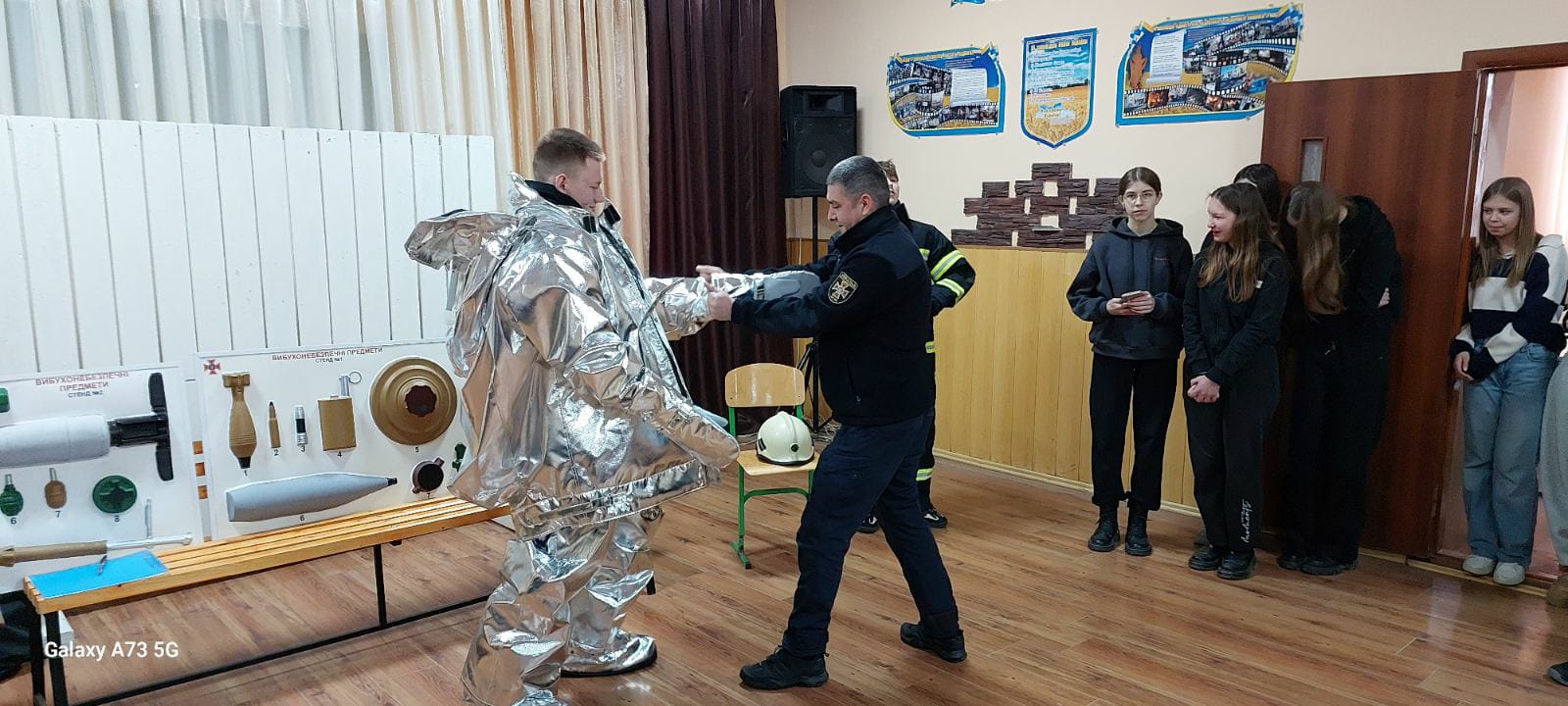 Під час зустрічі вихованців ліцею ознайомили із професією рятувальника, а також продемонстрували як правильно користуватись вогнегасником.