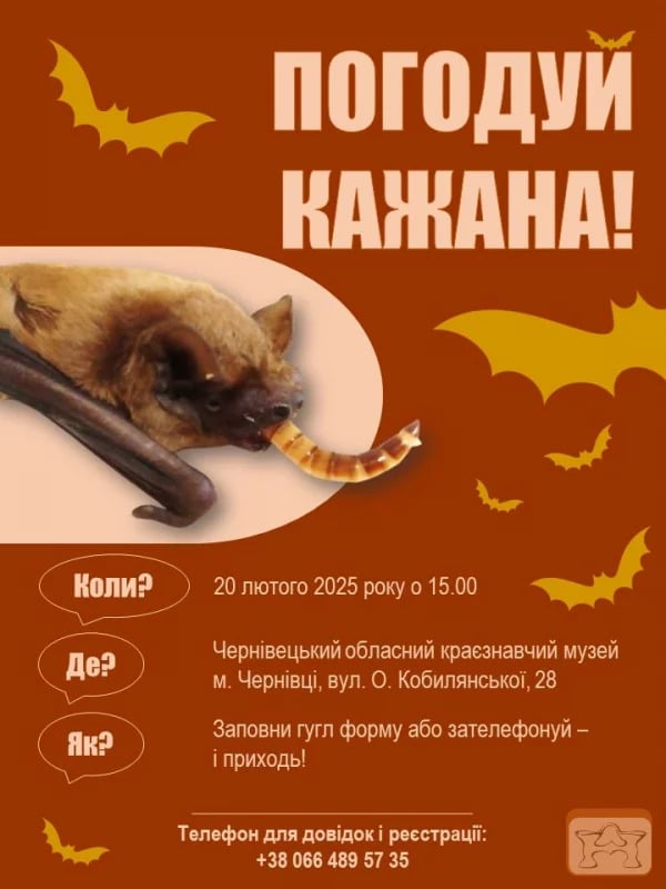 Чернівецький обласний краєзнавчий музей запрошує на унікальний захід, де відвідувачі матимуть змогу побачити живих кажанів зблизька та навіть погодувати їх.
