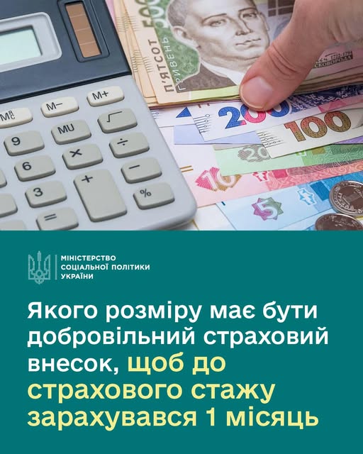 Якого розміру має бути добровільний страховий внесок, щоб до страхового стажу зарахувався 1 місяць