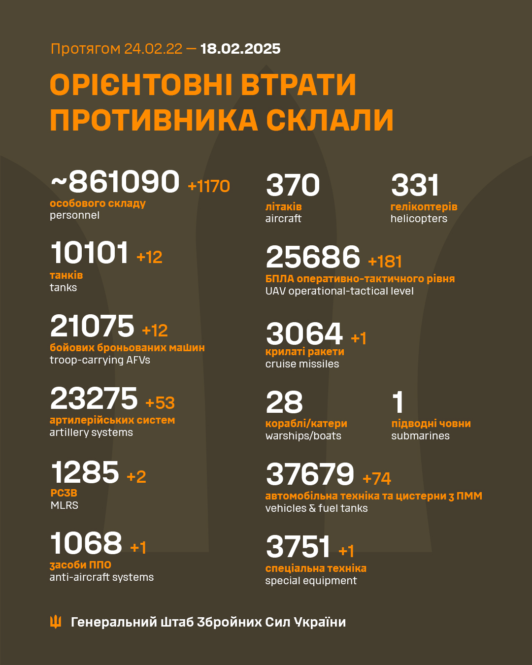 Ми зібрали для вас інформацію про тисяча дев’яносто перший день Великої війни: чим жили Україна та українці 18 лютого 2025 року.