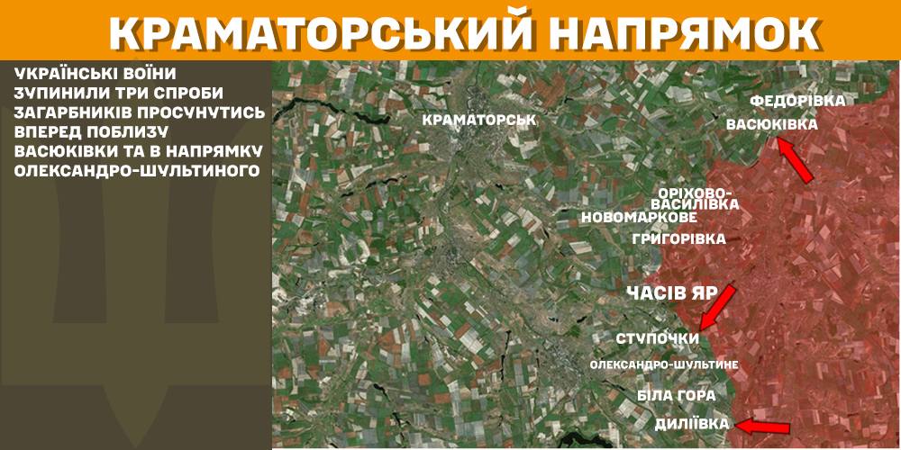 Три спроби загарбників просунутись поблизу Васюківки та в напрямку Олександро-Шультиного зупинили українські воїни на Краматорському напрямку.