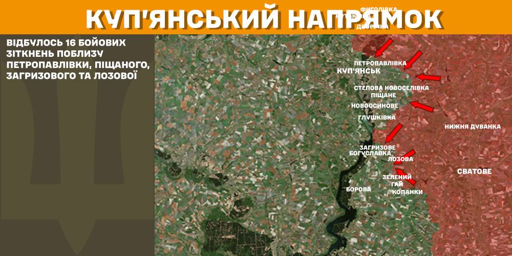 Вчора на Куп’янському напрямку було 16 бойових зіткнень поблизу Петропавлівки, Піщаного, Загризового та Лозової.
