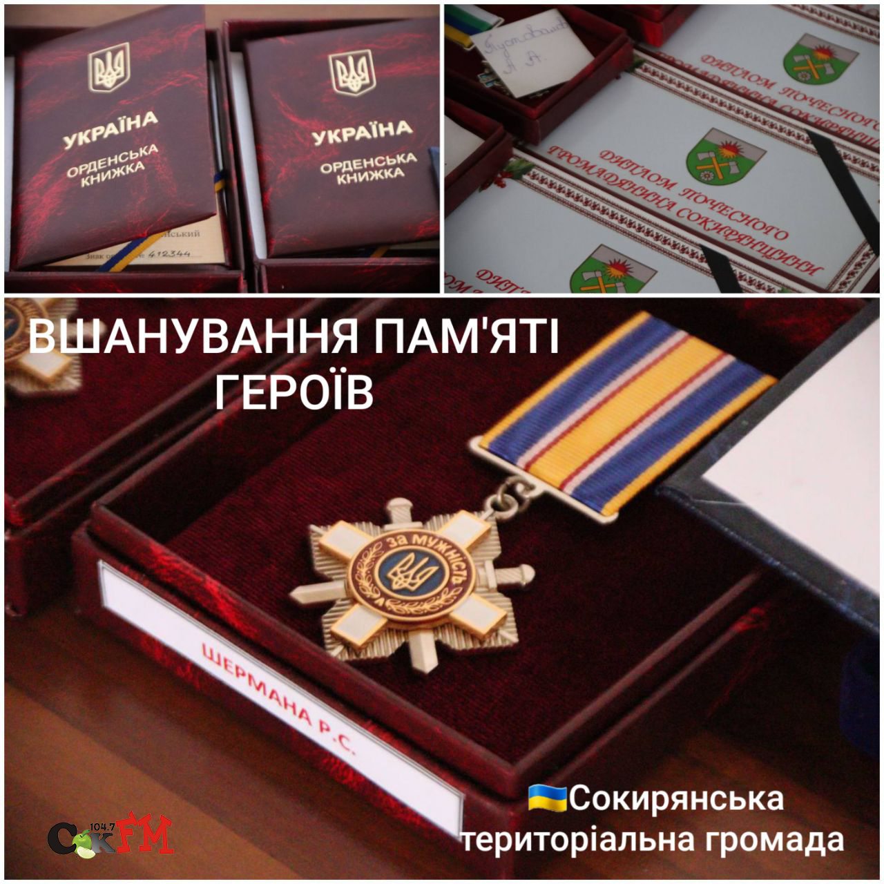 У приміщенні Сокирянської міської ради вручино нагороди державного, обласного та місцевого зразка родинам загиблих захисників громади, які віддали своє життя за Україну