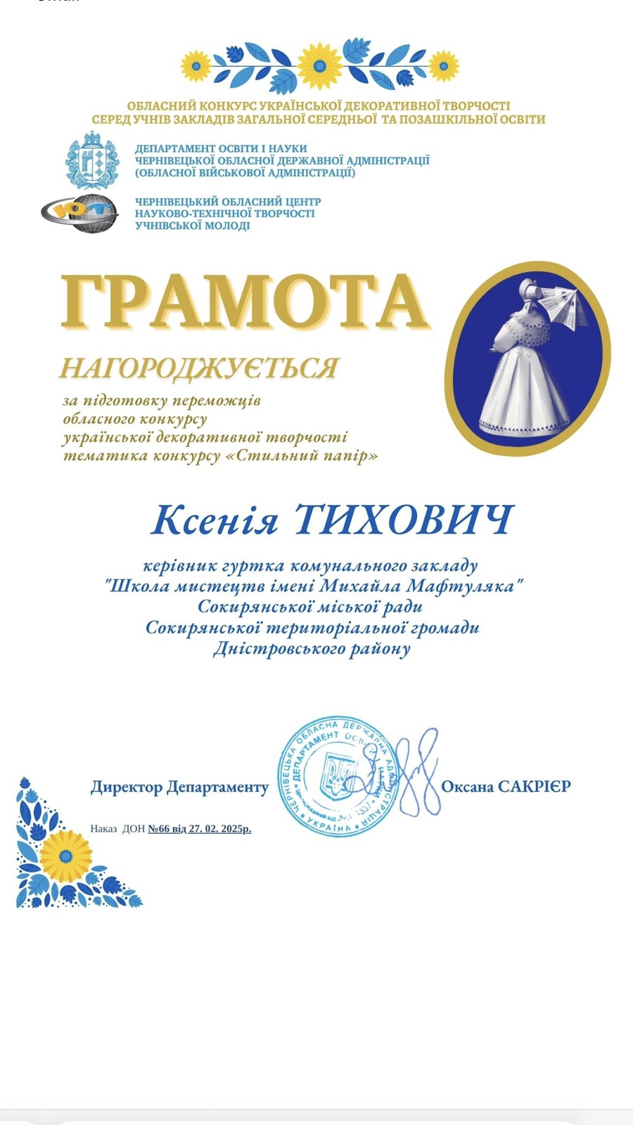 Вихованки «Школи мистецтв ім. М. Мафтуляка» – переможниці обласного конкурсу української декоративної творчості